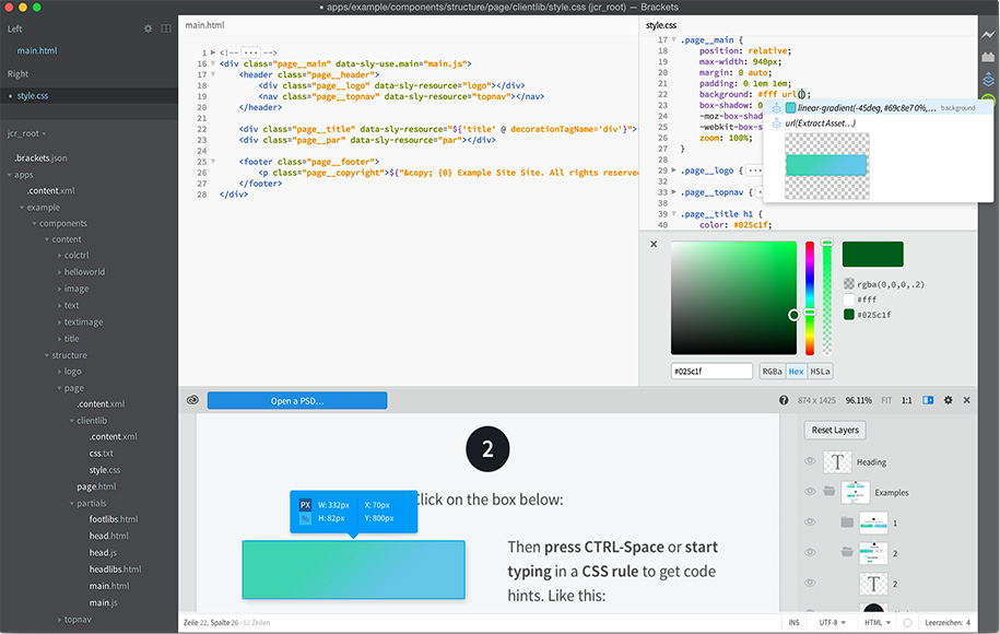 یکی از بهترین راهها برای پیشرفت در توسعه وبسایت، یکسانسازی و ایجاد ارتباط بین طراحی و پیادهسازی طرح است. Brackets توسط Adobe برای CSS، جاوا اسکریپت و HTML توسعه یافته و هدف آن ایجاد همین ارتباط است. این ویرایشگر قدرتمند با حجم بسیار کم و سبک مدرن محبوبیت زیادی دارد. بهترین عملکردی که Brackets را از بقیه ویرایشگرهای کد جدا میکند، ویژگی قابل توجه “Extract” آن است. این ویژگی به شما امکان میدهد رنگها، اندازهها، فونتها، گرادیانها و غیره را از یک فایل فتوشاپ به یک CSS آماده برای وب تبدیل کنید. این نرمافزار برای سیستمعاملهای ویندوز، مک و لینوکس در دسترس است.