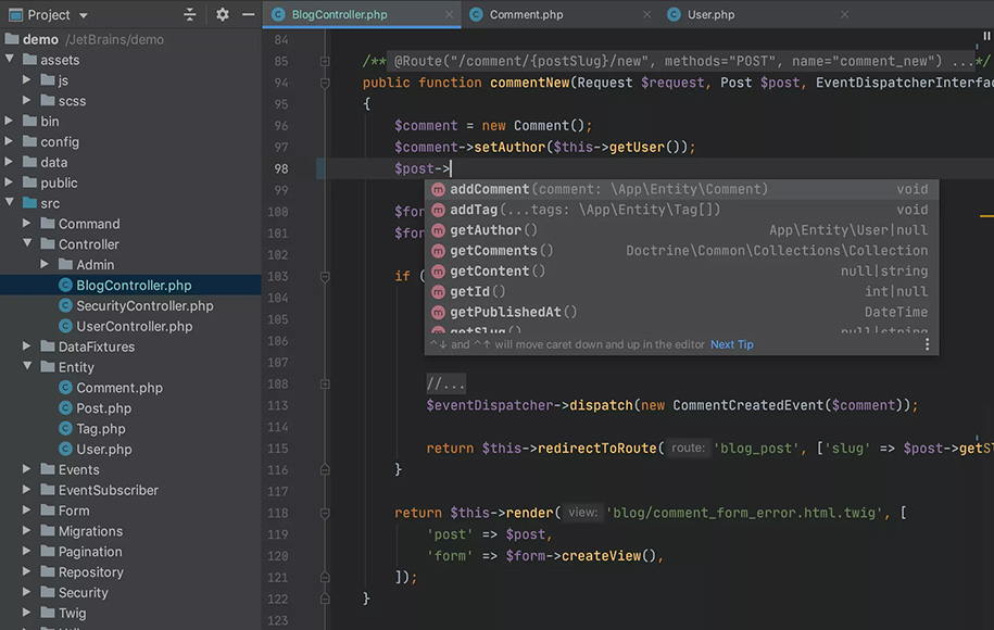 PhpStorm محصول شرکت JetBrains، یک IDE برای توسعه برنامههایی به زبان PHP است. در این IDE امکاناتی همچون کامپایل، اشکالزدایی و تکمیل خودکار و هوشمند کدها را خواهید داشت. رابط کاربری این نرمافزار ساده، جذاب و حجم آن کم است. این نرمافزار از چندین فریمورک PHP نظیر Laravel ،Jumla ،Drupal ،Magento ،WordPress و… پشتیبانی میکند. از PhpStorm میتوانید بهراحتی روی سیستمعاملهای ویندوز، مک و لینوکس استفاده کنید.