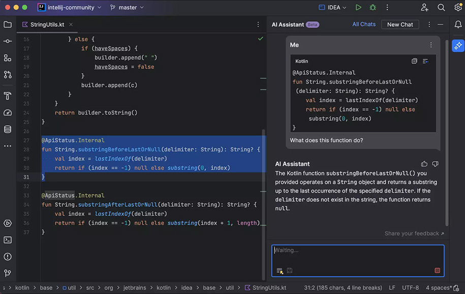 یک IDE مناسب برای توسعه برنامههای Java که مانند IDEهایی که پیشتر معرفی کردیم، توسط JetBrains ساخته شد. اگر تجربه استفاده از دو نرمافزار یادشده را دارید، قطعا کار کردن با این IDE برای شما ساده و لذتبخش خواهد بود. این نرمافزار را میتوانید روی ویندوز، مک و لینوکس نصب کنید. IntelliJ صدها ویژگی و ترفند را برای کدنویسی سادهتر ارائه میدهد. برخی ویژگیها نظیر تکمیل هوشمند و خودکار کد برای انواع زبانهای برنامهنویسی، پشتیبانی از فریمورک میکروسرویسها و ابزارهای داخلی مانند کنترل نسخه و ترمینال، این نرمافزار را خاص کرده است. استفاده از IntelliJ IDEA به برنامهنویسان مبتدی پیشنهاد نمیشود؛ زیرا ابزارها و روشها پیچیدگیهای بسیاری دارند که همین موضوع روی بهرهوری و مدیریت زمان این افراد تاثیر خواهد گذاشت.